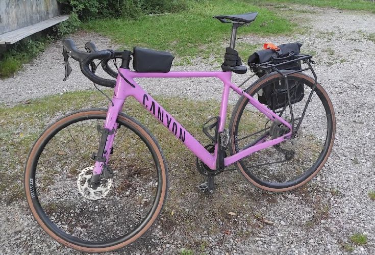 An der Fahrradgabel habe ich zwei Gepäckträgertaschen von Ortlieb fest montiert.