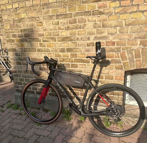 | Zusatzangaben | Schaltauge leicht nach innen gebogen. leichte schaden an der Gabel auf höhe der schrauben. Schrauben an der Gabel Metall. Metallen rote Dropbar Endstücke. |
